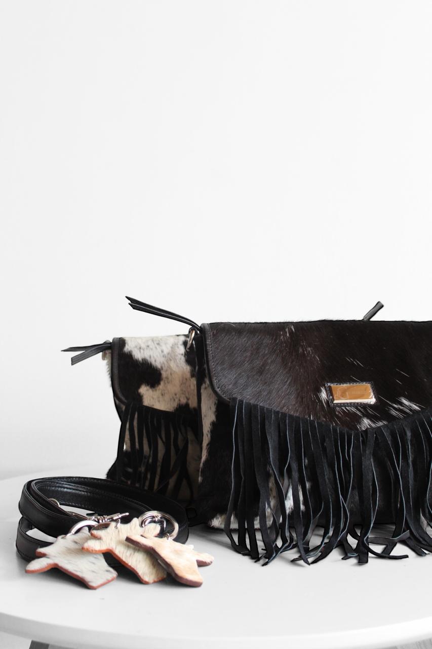 Bolso en pelo y cuero bovino con flecos