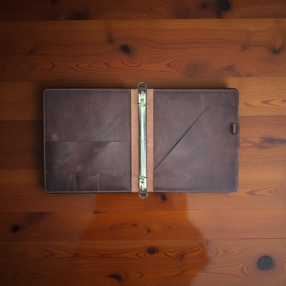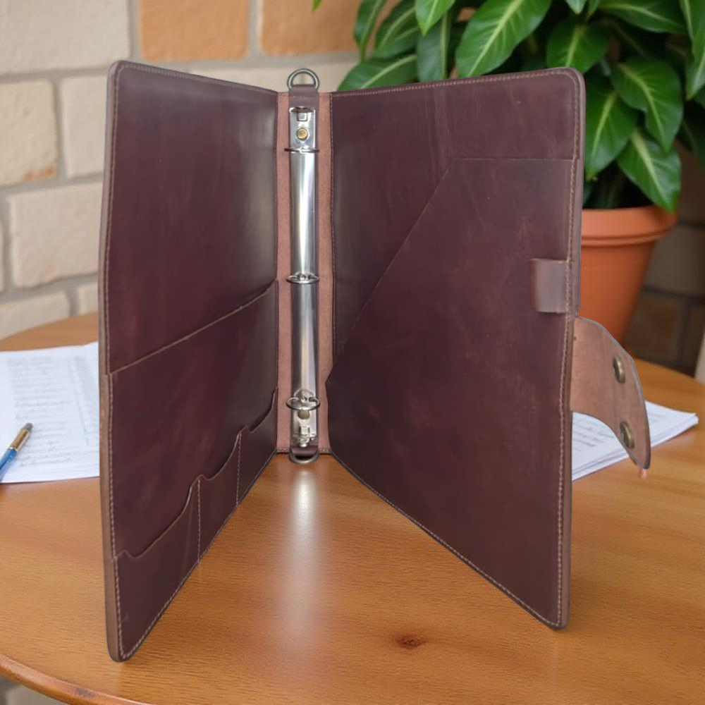 Folder en cuero genuino, elaborada con acabados artesanales que combinan resistencia, elegancia y practicidad. Un accesorio sofisticado que protege y realza el valor de cada composición.